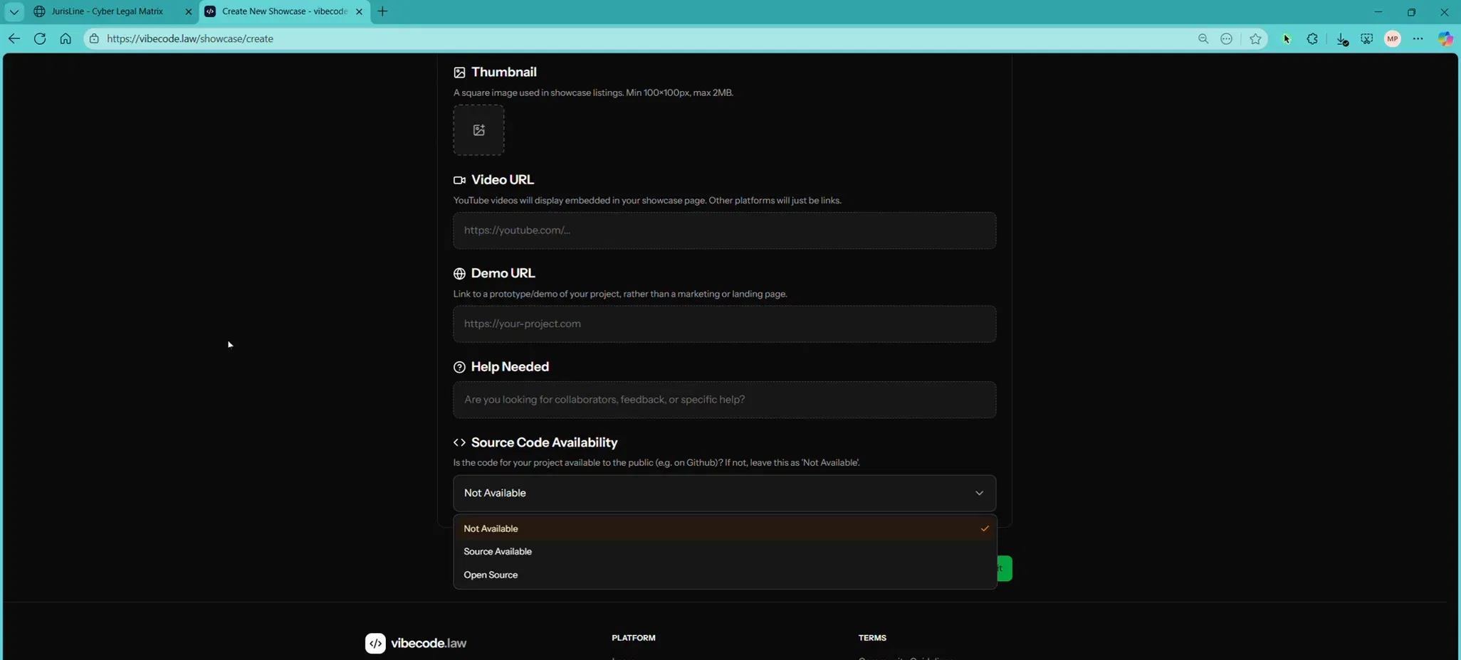 - Set up and submit a project profile on Vibecode.law, including name, tagline, and description