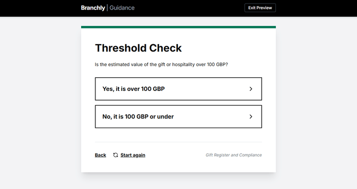Lawyers often need to surface information in ways that don't require users to wade through 40-page policies or hunt through SharePoint. AI-powered tools are all the rage right now, and for good reason - they can be hugely effective. But they can also be expensive and take effort to implement properly. And sometimes, especially for very simple flows, there's no need for the glitz. You just need an easy step-by-step path to push your users to the right location. That's Branchly. Simple, deterministic workflows that guide users to answers fast. No AI hallucinations. No document hunting. Just clear paths to clear outcomes.