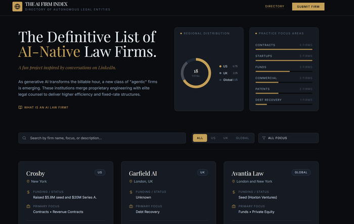 I'm not sure we yet have an agreed definition but I found myself noting down all the launches and struggling to keep up. I initially published a list of firms on www.agents.law but, after a suggestion on LinkedIn, I decided to vibecode a simple directory.