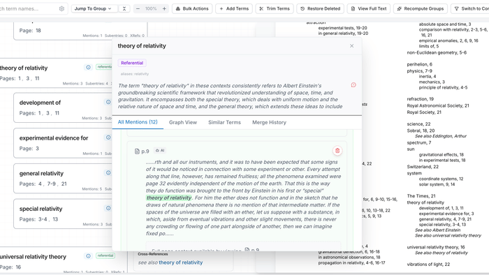 - Automatic back-of-book style indexing pipeline.