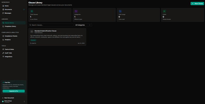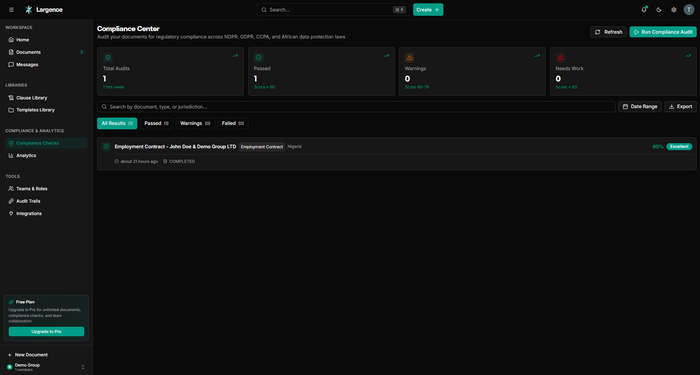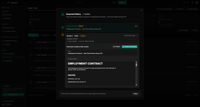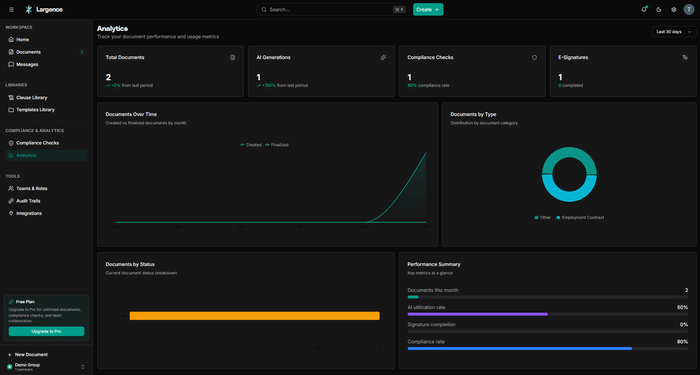 The problem Largence solves is a familiar one: legal professionals spend a disproportionate amount of time on routine drafting tasks, switching between disconnected tools, and manually tracking regulatory changes. Existing solutions address parts of this workflow in isolation but fail to connect them. Largence is built around the entire document lifecycle, from the first draft to an executed, stored agreement, with AI that surfaces suggestions for practitioner review rather than replacing practitioner judgment.