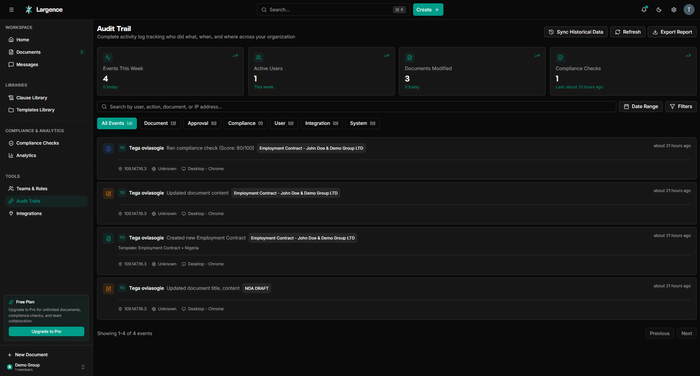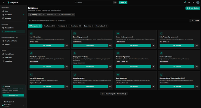About the Project Largence is a collaborative legal workspace built for legal professionals who need to produce higher-quality work faster, without the friction of fragmented tools. The platform combines an AI-powered drafting assistant, a three-tier template library, and jurisdiction-aware legal intelligence into a single environment, enabling lawyers to draft, review, collaborate on, and collect secure signatures on documents without ever leaving the platform.