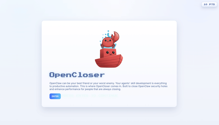Bringing in new business is the most important business of a firm (but not the most important thing). OpenCloser maps your sales process and creates automated improvements ready for OpenClaw... focusing on security first.