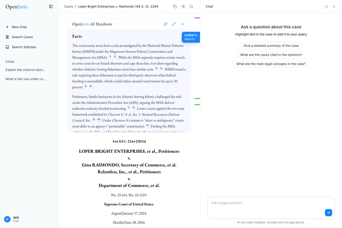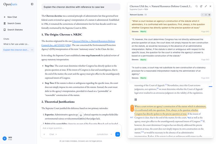 Think of us as a free and fast Westlaw with seamless AI integration to supercharge your legal research.