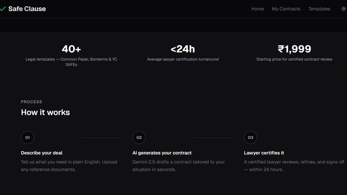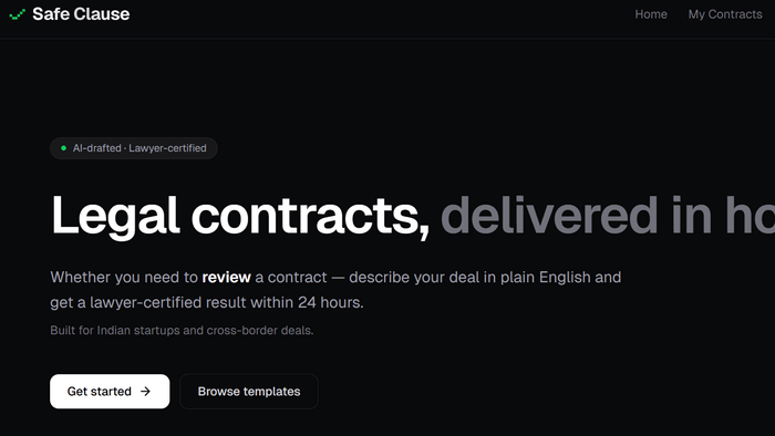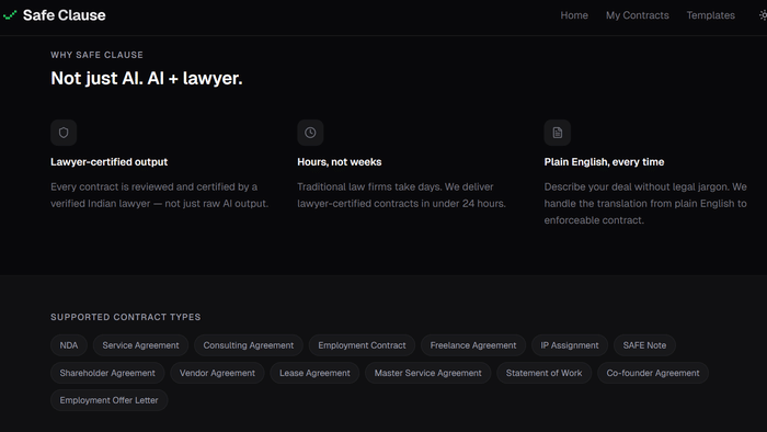 SafeClause is an AI-powered legal intelligence platform built for startups and small businesses who can't afford to get a lawyer on every contract, but also can't afford to sign the wrong one. The problem is painfully common: a founder gets a vendor agreement, an NDA, or a SaaS terms document dropped in their inbox. They don't have in-house counsel. Hiring a lawyer for a one-off review costs $500–$1,500 and takes days. So they skim it, hope for the best, and sign. That's how businesses end up locked into bad liability clauses, one-sided IP assignments, or auto-renewing terms they never noticed. SafeClause fixes this by letting users upload any contract and instantly get back a clear, actionable breakdown. The platform flags high-risk clauses, explains what they actually mean in plain language, and suggests how to push back or negotiate, all in seconds, not days. Under the hood, it combines AI-powered contract review with legal clause risk detection, plain-language translation of dense legalese, and automated negotiation suggestions tailored to the specific clause type and risk level. The goal isn't to replace lawyers, it's to make sure founders walk into every contract conversation informed, protected, and in control. SafeClause is live with early users today, and the feedback has consistently pointed to the same thing: people feel confident signing (or pushing back) for the first time, without the anxiety of flying blind through legal language that wasn't written for them.