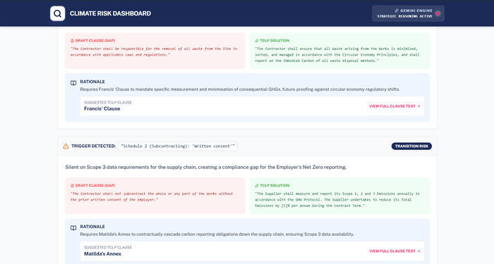 The problem is that legacy contract structures hide significant climate risks that are rapidly becoming financial and legal liabilities. This prototype explores a "Modular Intelligence" approach to solving that.